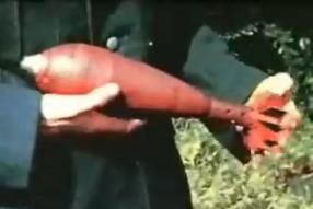 A droite : le chargeur introduit la roquette (on remarque la tenue du tireur qui regarde le chargeur)