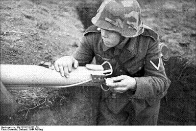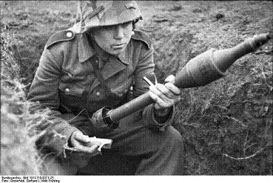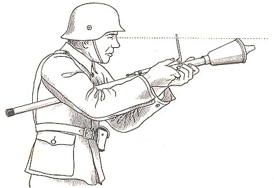 Utilisation en piège : Le PzF est fixé sur un support (clôture, maison, ...); un cable fixé à la mise à feu traverse la route et est fixé sur un autre support. Le char passe, emmène le cable qui déclenche la mise à feu et la roquette atteint le char.