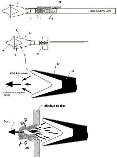 La charge propulsive qui amène la charge explosive au contact de la cible est située dans le tube (c'est elle la cause des fumées et des brûlureséventuelles)